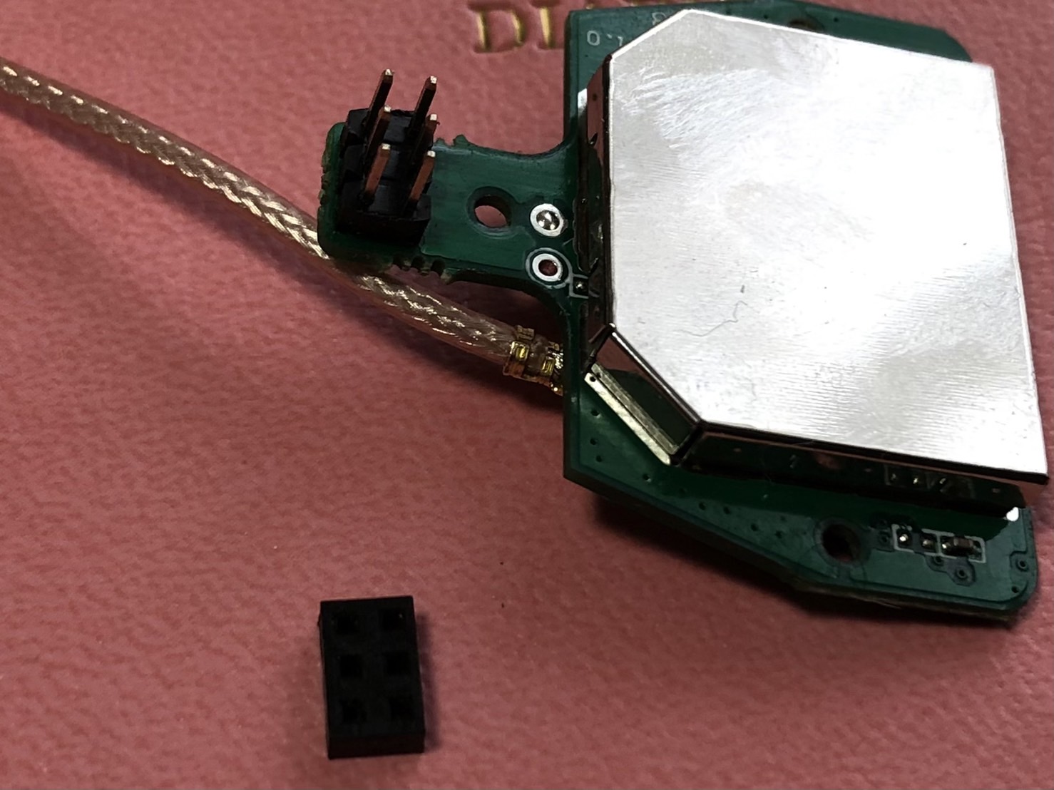 買ってから1週間というのがあって、恐る恐る分解しました。アンテナ固定マウントのネジまでははずしましたが、2.4アンテナと電源部分がうまくはずれず、アンテナ固定マウントをつけたままで、手探りで作業をすすめてしまったことが失敗につながりました。トランスミッターは見えないところから引っこ抜いた感じです。ソケットの穴の状態からおそらくメス側の金属部分についていたものではないかと思います。このソケットを取り付けるにはアンテナ固定マウンをはずさないと取付けが不可能と思います。