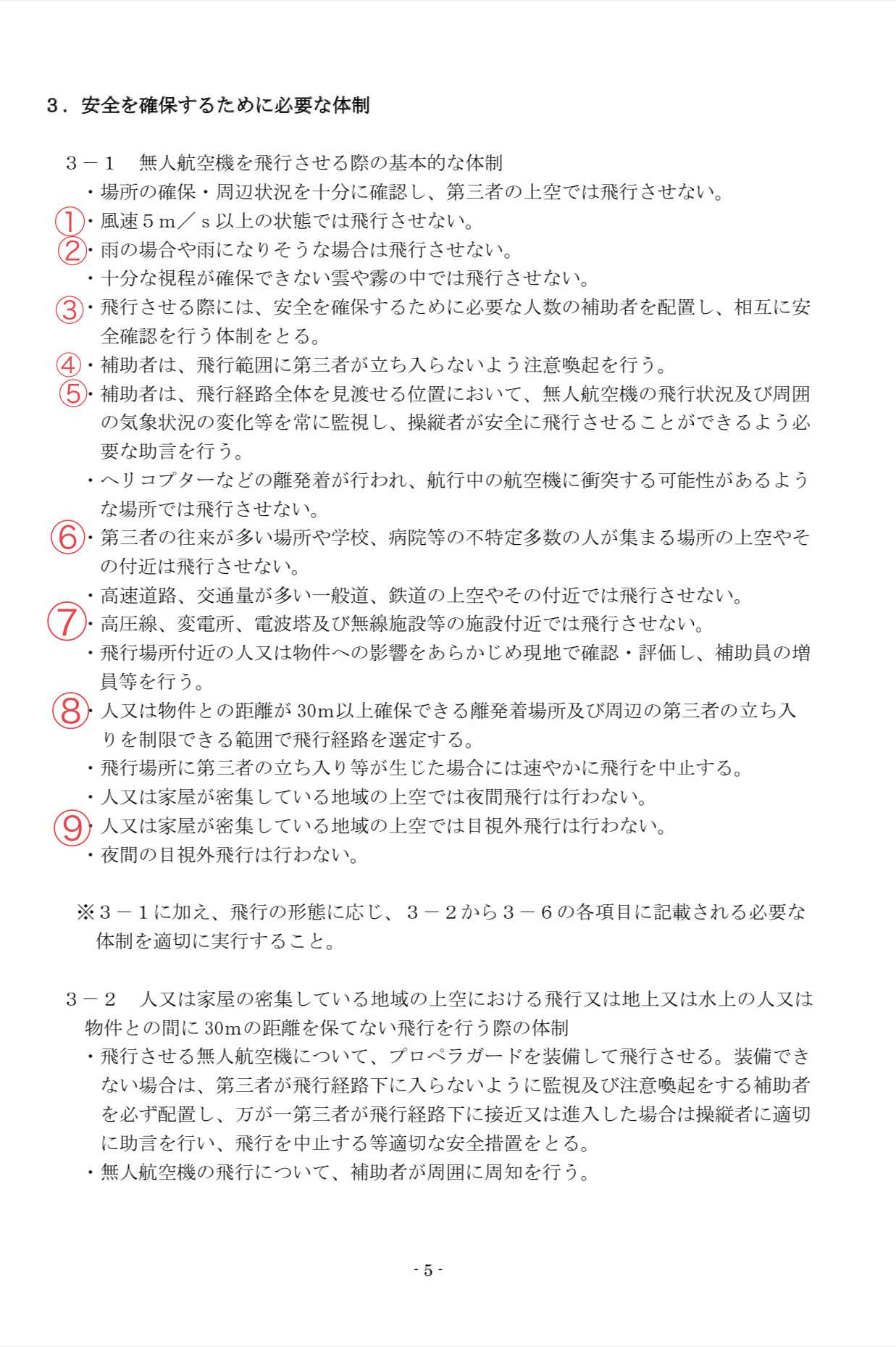 詳しくありがとうございます。こんな話はしたくないですが、傘を差しながら自転車に乗るのは道交法違反だと思いますが、知らない人は知らないし、黙認されている面もあって、ドローンもグレーな部分もありそうですね。何か事故があった時には正当性を示せるように運用していきたいと思います。