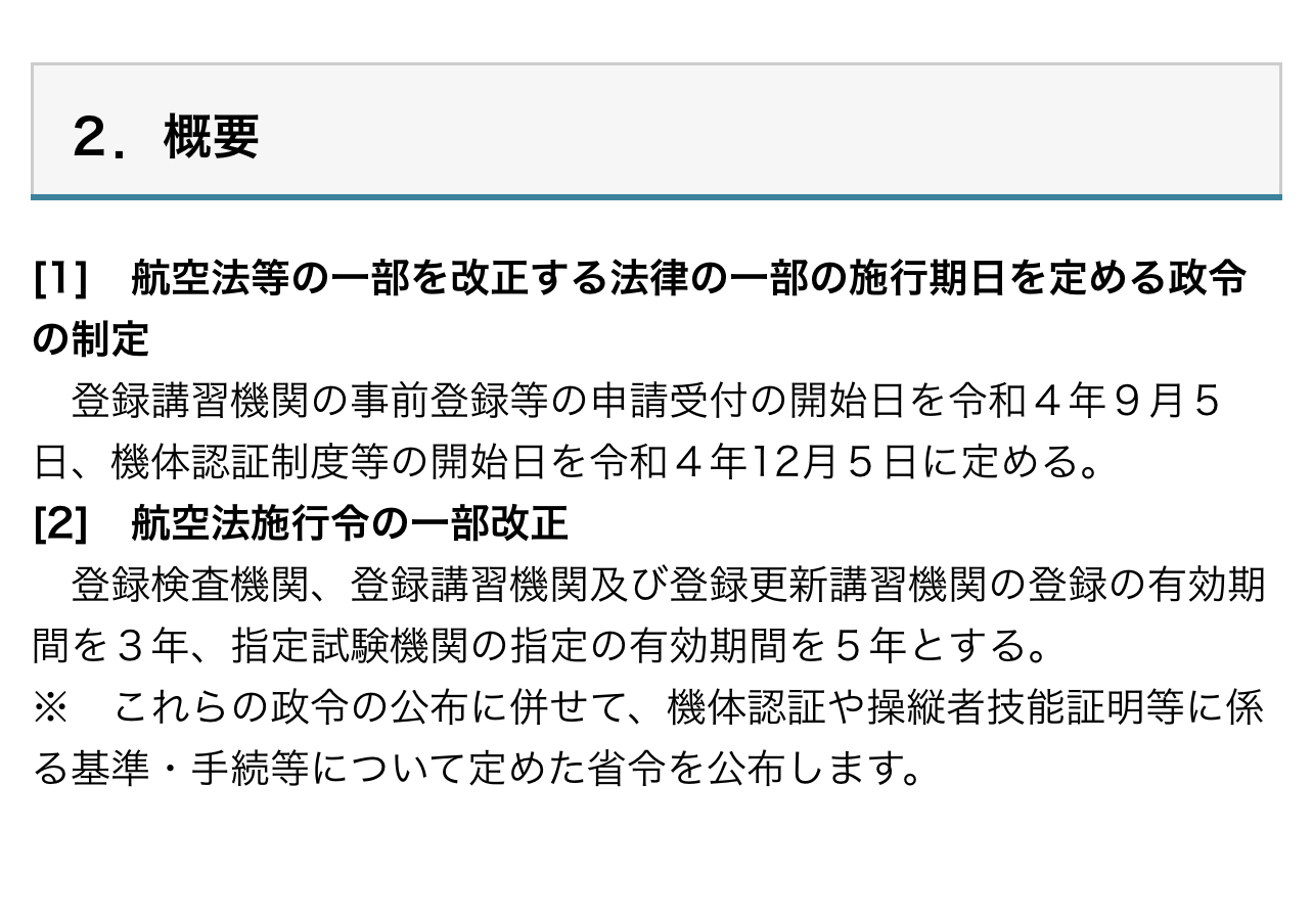 登録講習機関の受付も始まりましたし。ドローン教習所の各校も、登録講習機関へ向けて動き