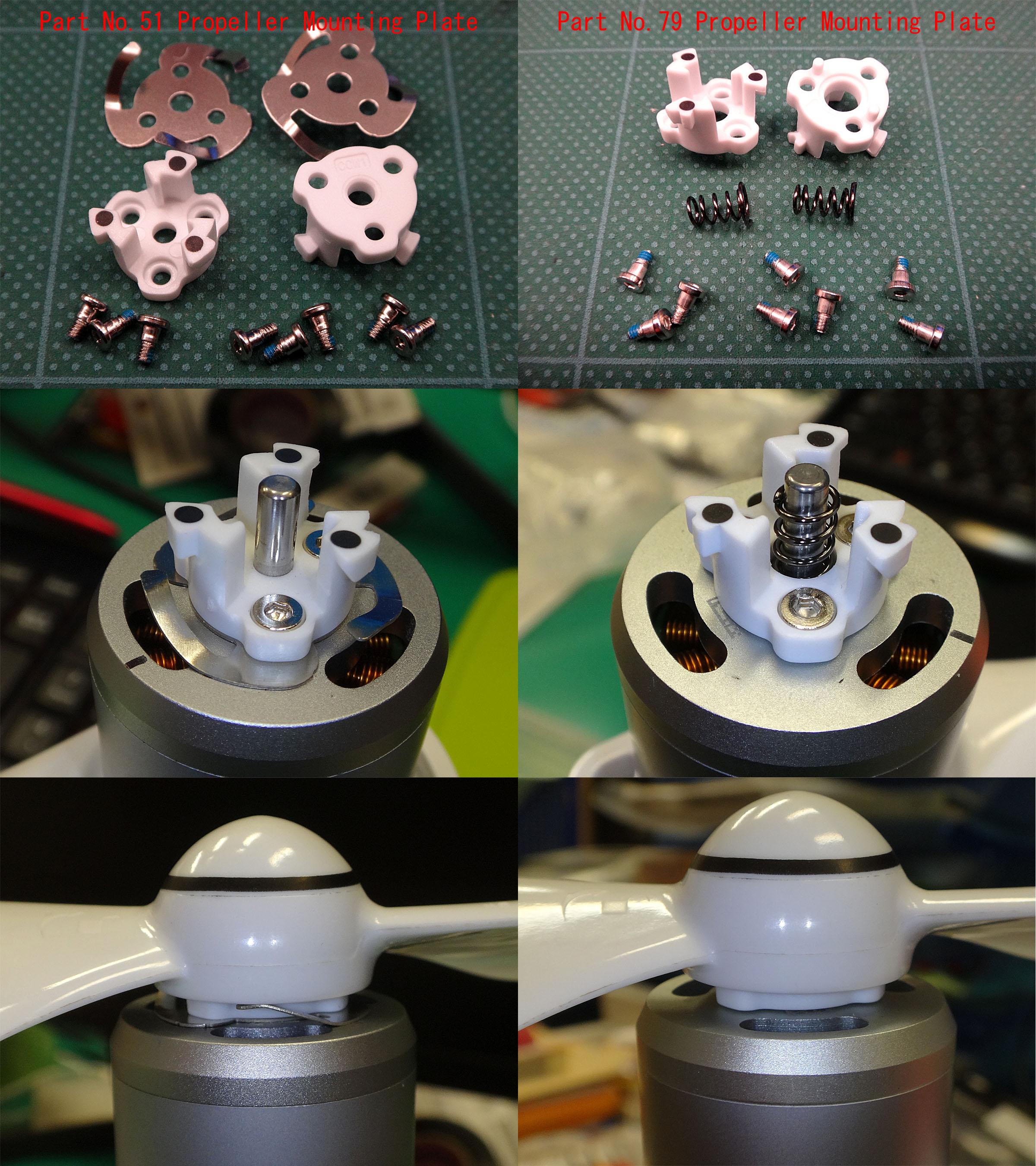 あと、パーツNo.51プロペラマウンティングプレートに比べ、信頼性と堅牢性が増しているというパーツNo.79プロペラマウンティングプレートという物もあるようです。価格が3倍もしますが興味があります。
