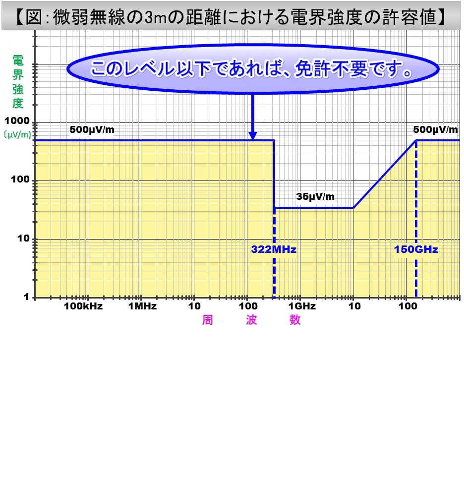 表示されることになっています。微弱無線設備は「従事者免許は不要」です。