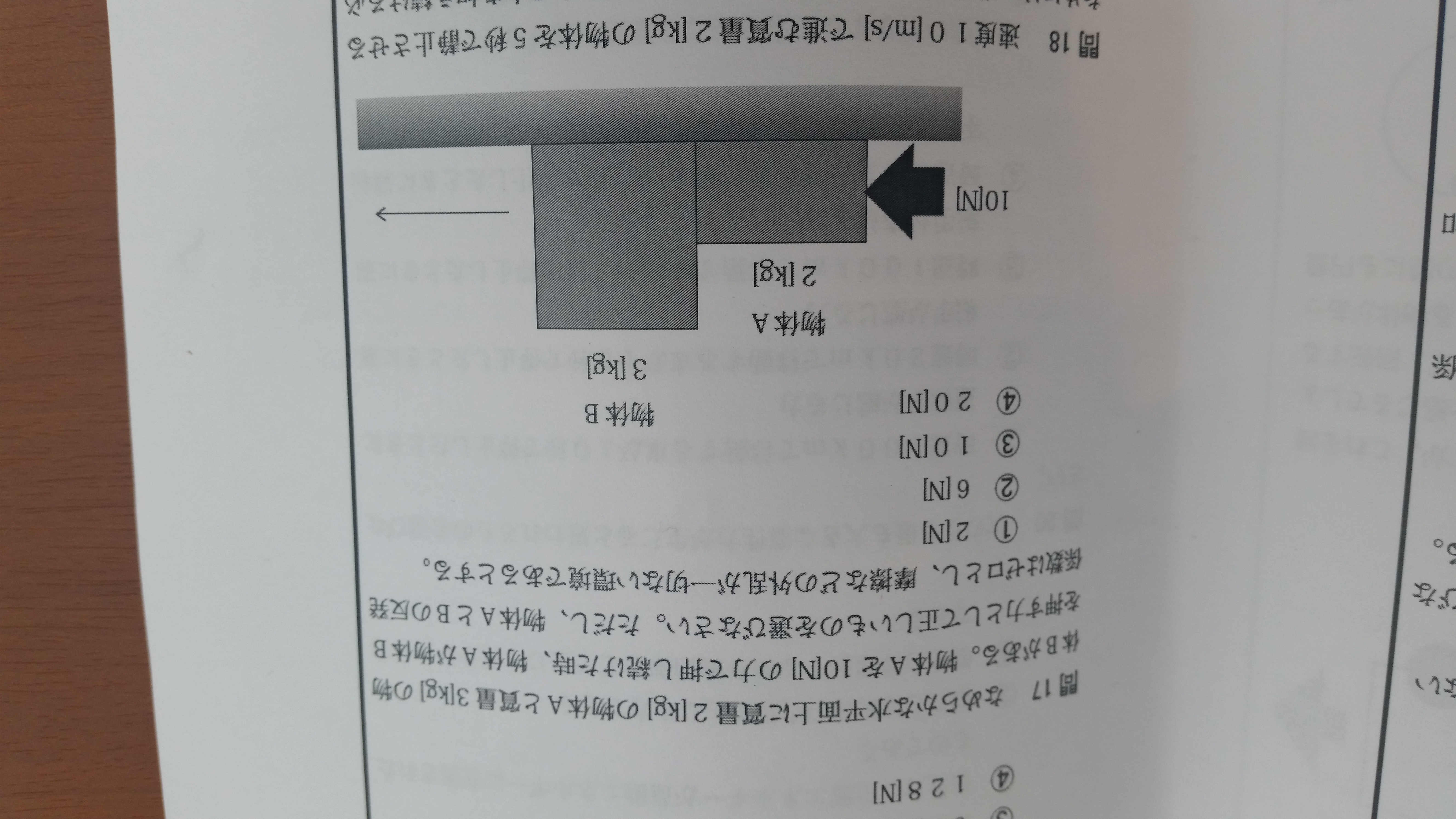 今回の問題では人が物体Aを押すことによって物体Bに力が伝わってますが
