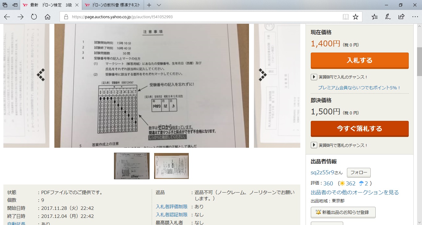 残念な事態が発生、過去問やら1~2級で送られてくる過去問やPDFが転売されてます。