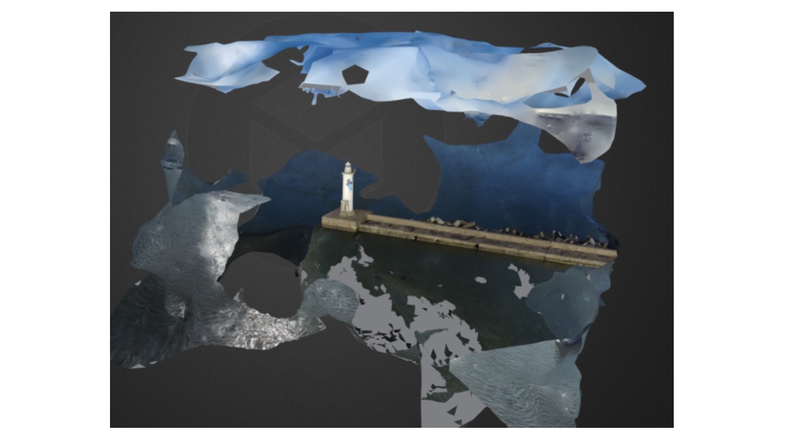 灯台は3D化できたのですが、空と海が変に立体化されてしまいました