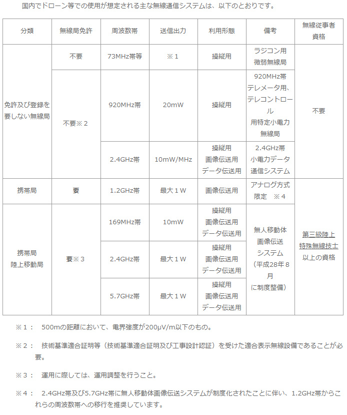 2.4ghz帯と5.7ghz帯に無人移動体画像伝送システムが制度化(平成28年8月制度化)