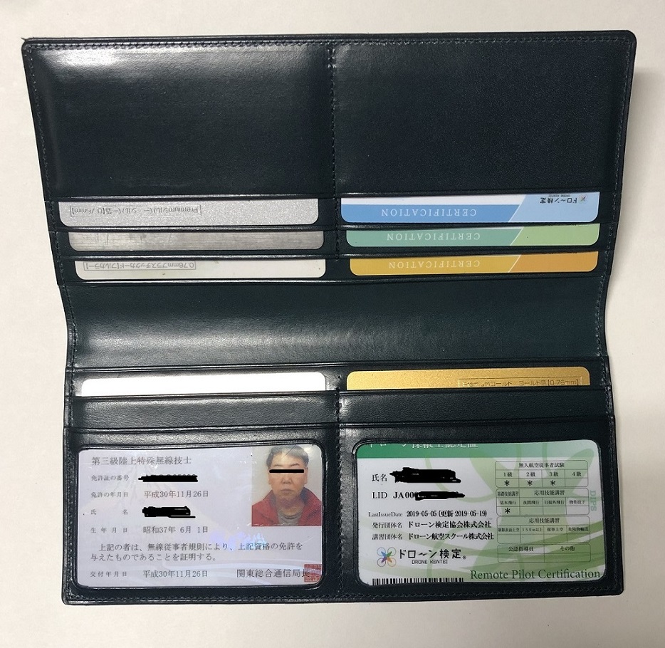 私もドローン関係の証明証の類でまとめられた記載のカードは便利だと思います。