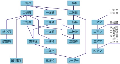 第1級 2級無線通信士→航空局 国際航路船舶局 国内航路船舶局 海上保安庁巡視船通信士