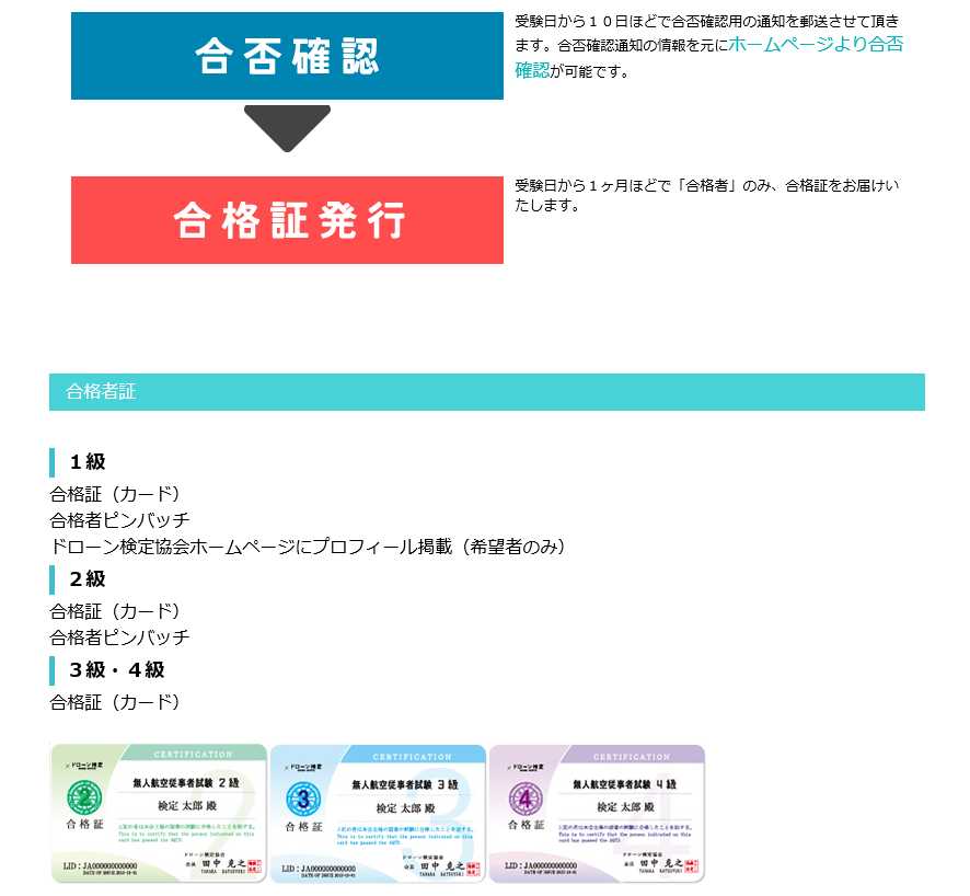 カードは後日郵送で貰えます。カードやプロフィール欄に記入されているLIDが後々重要になってきます。各種合格者特典が使える上に今後ドローンの実技である基礎技能を受講されるなら国土交通省指定の座学1を免除扱いになります。(¥20,000-)
