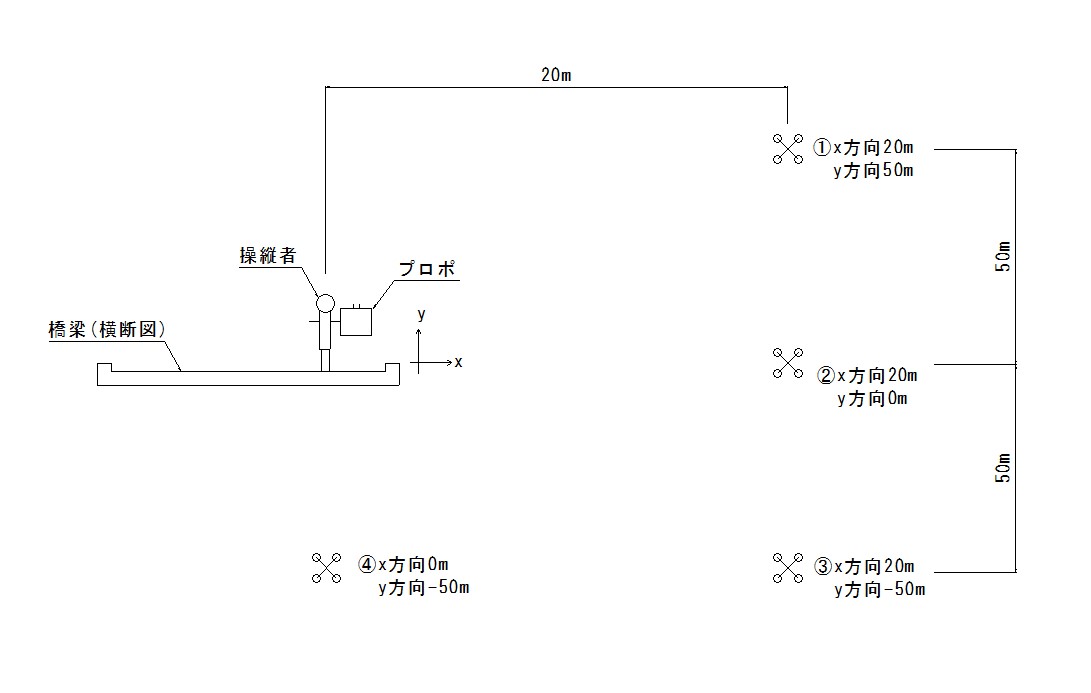 添付画像の①(水平方向20m鉛直方向50m)